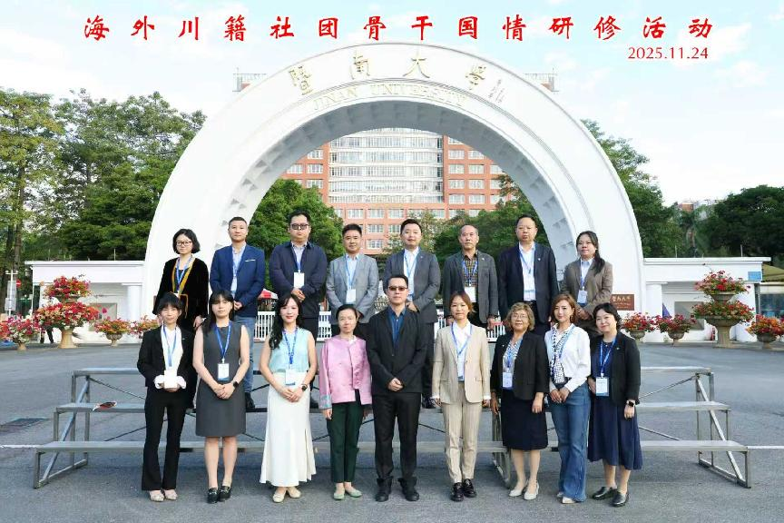 为加强海外川籍社团骨干对国情的了解,促进侨胞与国内各界的交流与合作,受四川省委统战部委托,我院于2025年11月23日至29日举办了海外川籍社团骨干国情研修活动。四川省侨务综合处处长李永清,四川省侨务综合处二级调研员曾茹然,暨南大学教育学院院长熊卫华,暨南大学党委统战部副部长张继涛,暨南大学教育学院副院长曾牧出席开班仪式。