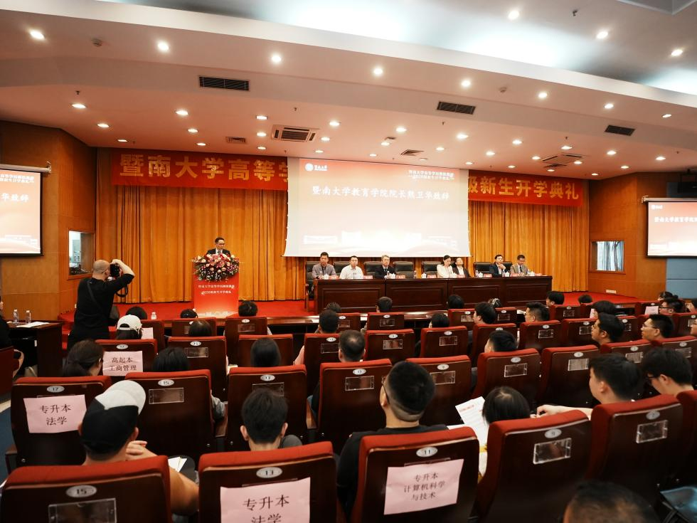 3月15日下午,暨南大学高等学历继续教育2026级新生开学典礼在石牌校区曾宪梓科学馆国际会议厅举行。教育学院、校内联合办班院系及合作教学点负责人、教师代表与2026级新生通过“线上+线下”形式参加。